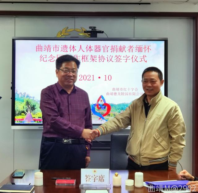 10月13日,曲靖市紅十字會舉行曲靖市遺體人體器官捐獻(xiàn)者緬懷紀(jì)念園項(xiàng)目建設(shè)簽約儀式,曲靖市紅十字會與曲靖德龍陵園有限公司正式簽訂了項(xiàng)目建設(shè)協(xié)議書。該紀(jì)念園的建成是我市首個(gè),云南省第五個(gè)遺體人體器官捐獻(xiàn)者紀(jì)念園。市紅十字會干部職工、志愿者代表,曲靖德龍陵園有限公司董事長,總經(jīng)理參加簽約儀式。