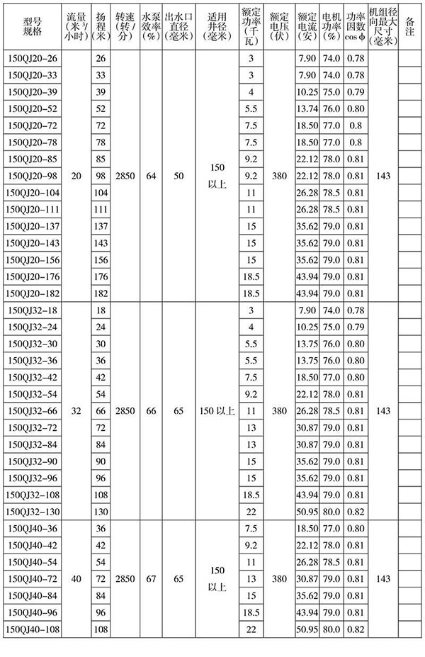 150/ 額定揚(yáng)程: 150 米